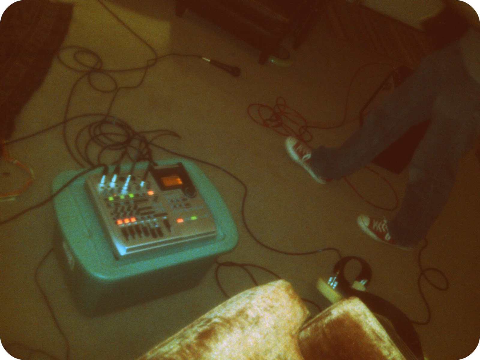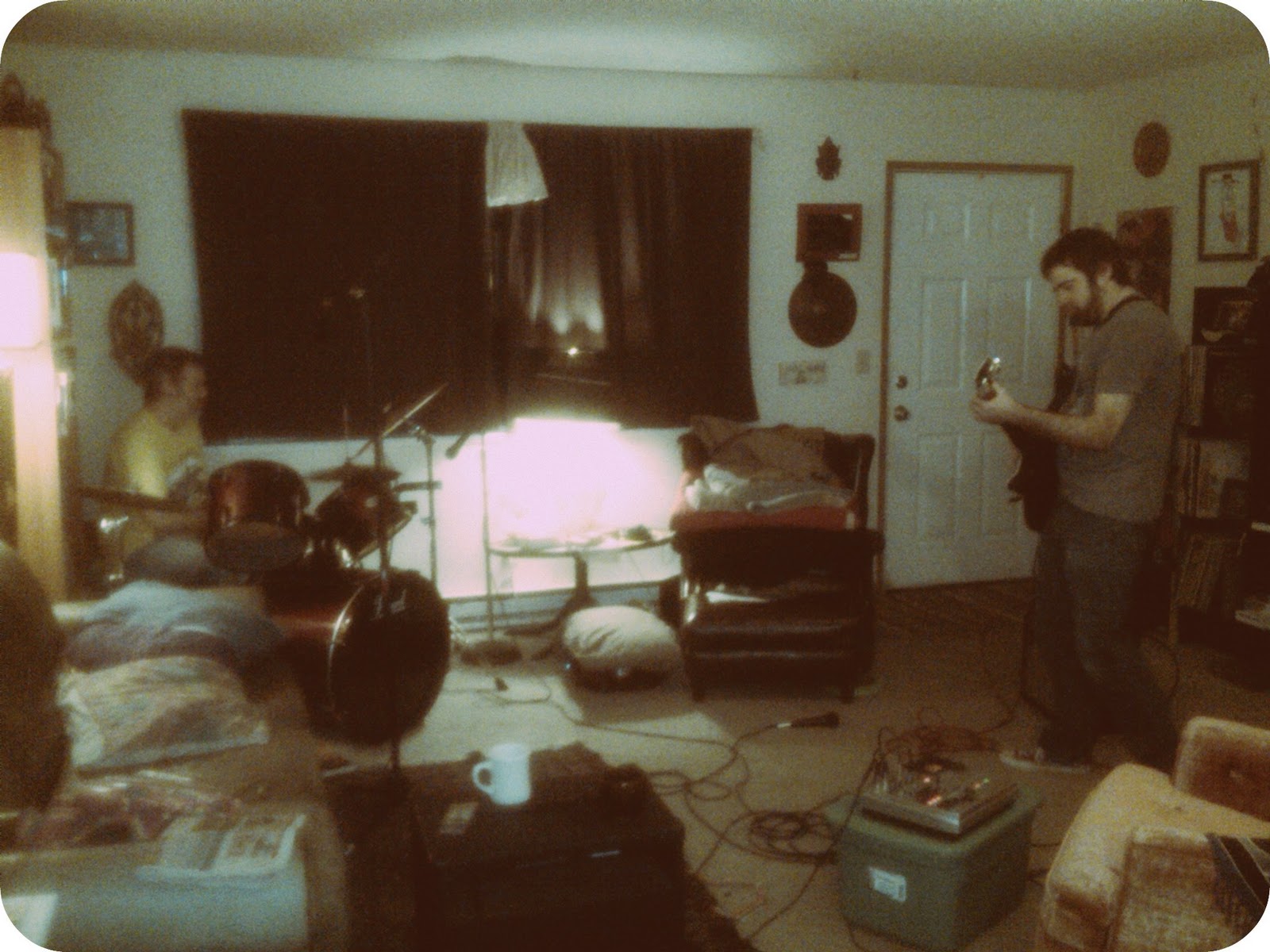 Drums (Pete O'Shaughnessy) and guitar (Jim) recorded on a Fostex MR-8HD (using three mics) in Pete's living room. Coffee was served (though, to Jim's dismay, no mini-tacos).